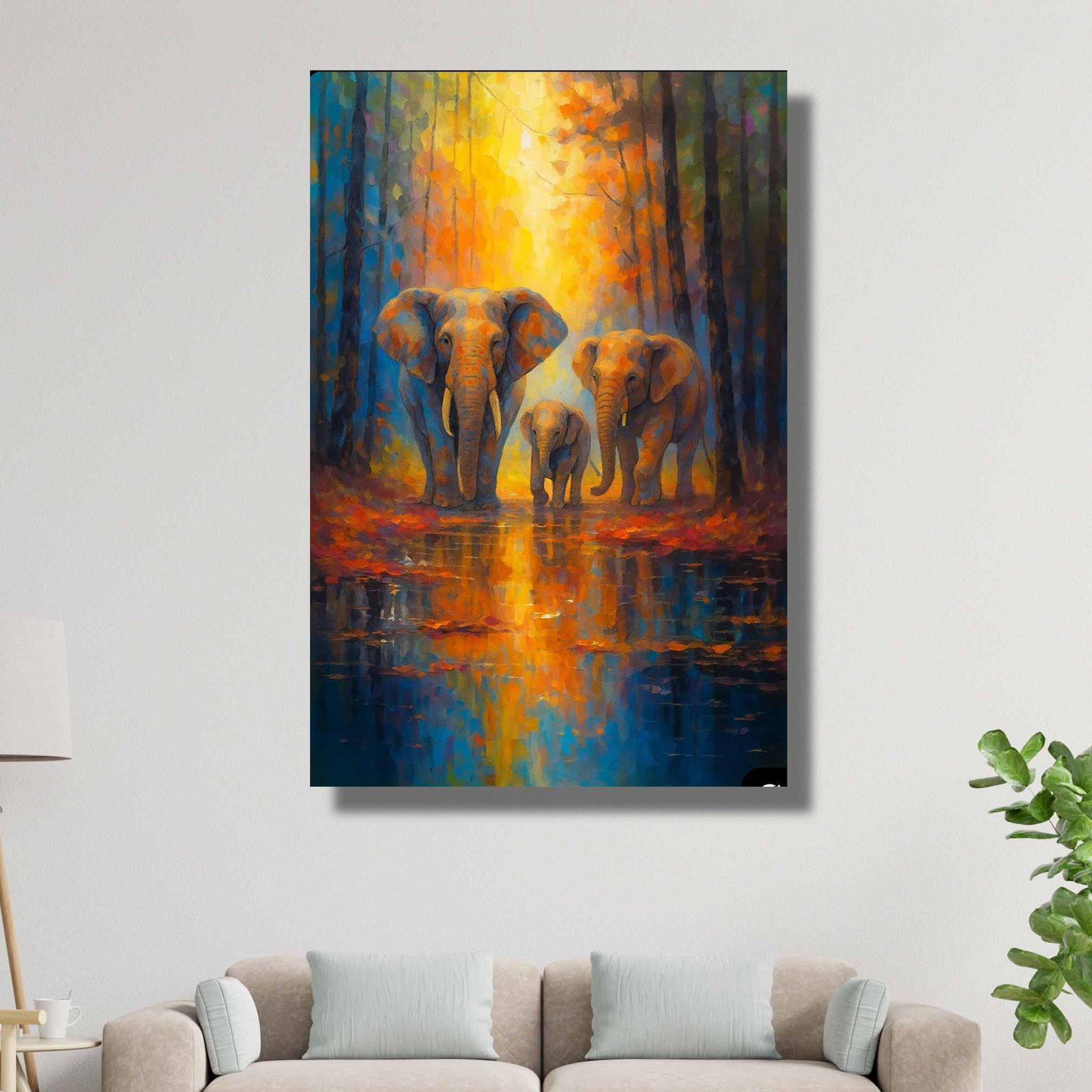 This Asian Elephant Animal Painting radiates power, wisdom, and family unity. The vibrant strokes capture the elephants walking together, symbolizing strength, protection, and emotional bonding. A meaningful piece that uplifts your décor while adding cultural authenticity.