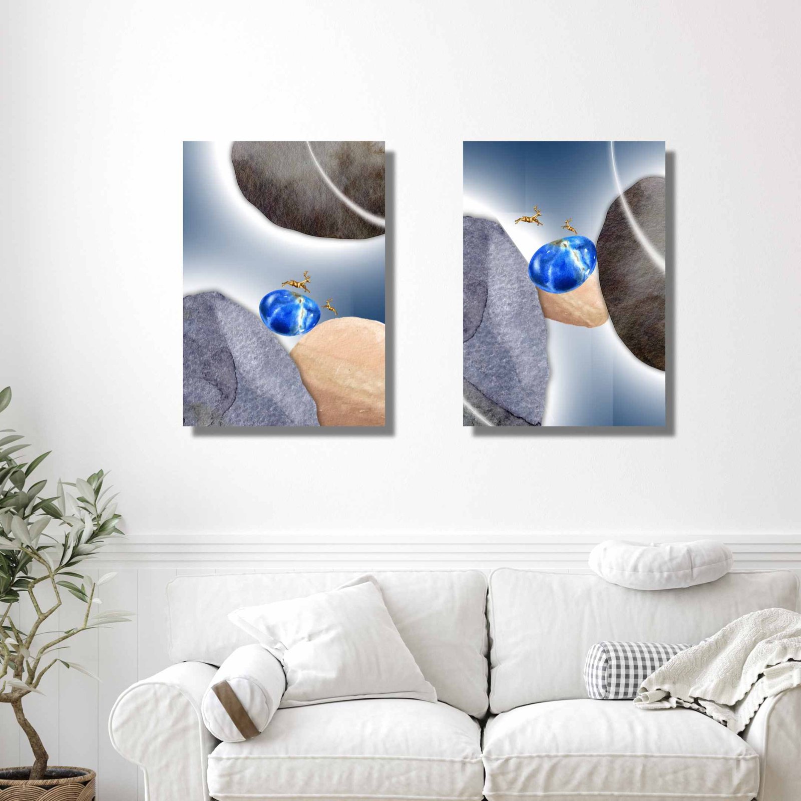 This modern wall art set merges abstract creativity with symbolic meaning — deer representing endurance, prosperity, and harmony, while the surreal setting enhances the mystique. Perfect for adding depth, color, and sophistication to any interior.
