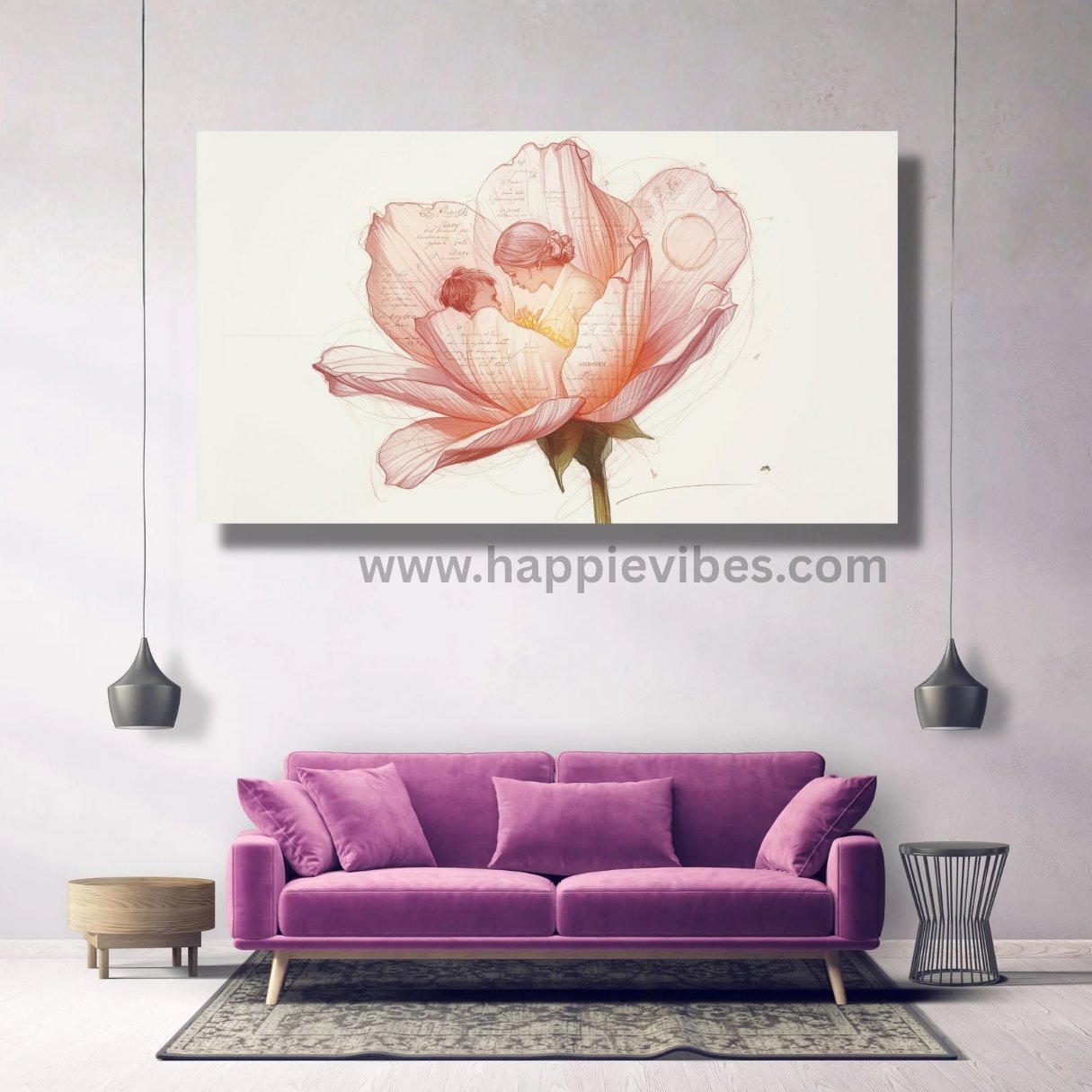In the heart of a delicate blossom, life blooms anew — “Blossom of Love” captures the purest form of creation and affection. This mother and child imagination canvas painting artwork reimagines love as a flower itself — soft, radiant, and timeless. The petals cradle the figures in gentle harmony, symbolizing nurturing energy, warmth, and eternal connection.