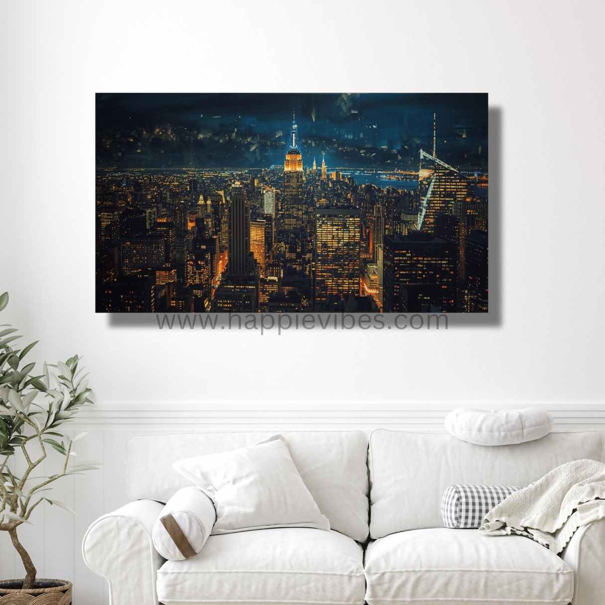 Allow this inspiring NYC Night Skyline Art to transform your modern home decor or executive office decor into a statement of unparalleled urban elegance and aspiration. It elevates the atmosphere, sparks conversations about culture and drive, and reinforces the feeling that energy is always within reach. Perfect for sleek living areas, sophisticated bedrooms, or as a classic gifting option. To find more unique and inspiring art for your home or office, explore our full collection of categories here: https://www.happievibes.com/shop/. This unique artwork is an original vision of Happie Vibes, created and curated by the artist. We guarantee the highest quality product, designed to infuse your space with positivity and lasting beauty.