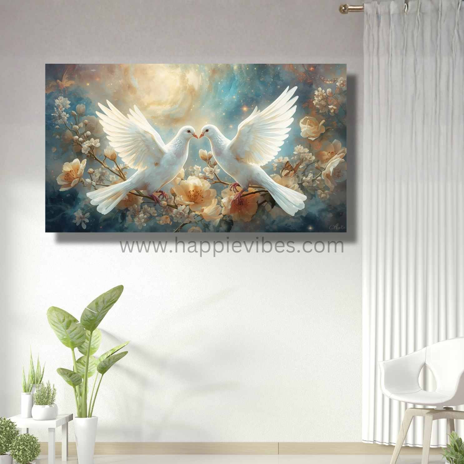 Allow this inspiring White Dove canvas art to transform your bedroom or living room into a sanctuary of eternal romance and calm. It uplifts the spirit, encourages moments of quiet connection, and reinforces the beauty found in shared serenity. Whether you seek a unique Husband Gift to express your deep feelings or a beautiful piece to mark your enduring commitment, this artwork serves as a timeless reminder of your bond. Discover more beautiful and inspiring pieces for your home at: https://www.happievibes.com/shop/. Each piece is an exclusive creation, carefully designed and brought to life by the artist in their unique style.