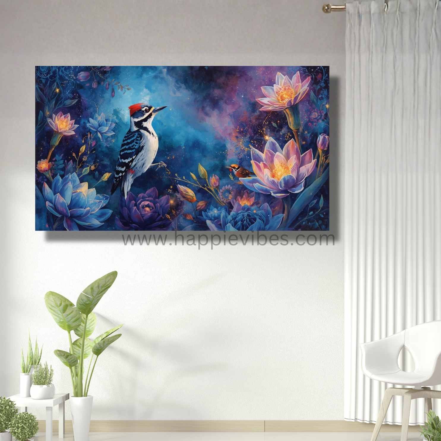 Allow this inspiring Woodpecker wall art to transform your room into a sanctuary of mystical charm and peaceful contemplation. It calms the mind, sparks a sense of gentle discovery, and reinforces a deep appreciation for the hidden beauty of the natural world. Perfect for a living room, study, or bedroom, it adds a striking layer of unique artistry and an atmosphere of profound tranquility. Discover more captivating and inspiring pieces for your home at: https://www.happievibes.com/shop/. Each piece is an exclusive creation, carefully designed and brought to life by the artist in their unique style.